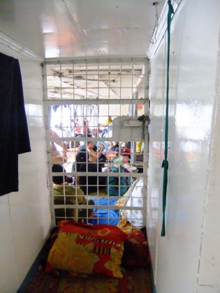 普段利用している1等室は船の最上階に位置し、その値段はシングルで1,200Tk (訳1,600円前後)ほど。その他ダブル、ツインもあります。部屋は写真のとおり、ベットとテレビ、扇風機があり、トイレは共同です。