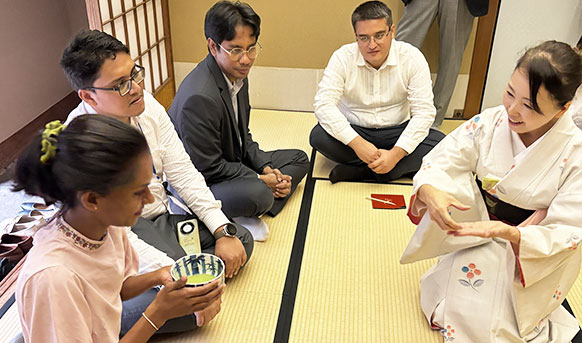 研修の構成は、基本的には平日は午前に2つの講義、午後に通信関係の施設、研究所の見学、休みの日には日本文化に親しむための小旅行、茶道体験などとなっています。講義は、ICT分野に加え、幹部に必要な幅広い見識を養う観点からリベラルアーツの要素を含み、エネルギー問題などの社会的テーマを含む幅広い分野をカバーした内容となっております。講義は英語で行われます。