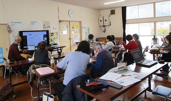 2026年2月18日、広島県呉市天応大浜アパート集会所、呉市天応地区住民4名、坂町住民2名、この日の研修テーマは「自治会PC会計処理支援、スマホ基本機能と設定研修」、講師はBHN広島事務所の沖野 啓子氏(主任講師)、杉原 瑞枝氏、岡崎 幸子氏、寺岡 和子氏の4名が担当しました。