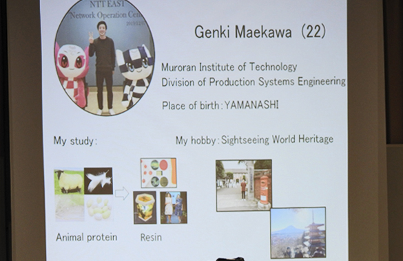 「ICTを用いた出身地の課題解決」として、出身地・八王子市の課題である ”霊園管理システム”を 提案。お墓の清掃及びお供え物の監視方法についての対策を取り纏めて、着眼点のすばらしさをアピールしました。