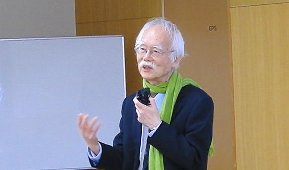 本講座開始にあたり挨拶をする由良名誉教授(電通大)