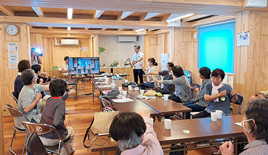 2024年7月16日(火)午前、珠洲市正院町第1団地集会所において、スマホ研修会を開催しました。スマホ研修会の中では、被災者の皆さまに小型LEDランプ(アイムライト)を進呈し、皆さまに組立てていただきました。スマホ研修会には、テレビ画面を利用して座ってできる健康体操を組み入れました。