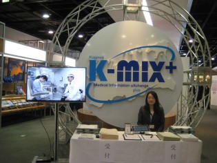 この大臣会合を記念し、4月28日~30日の3日間、国際会議場に隣接する高松シンボルタワーにおいて「K-mix+(香川医療情報ネットワーク)利活用推進フェア」*が開催され、医療・福祉・介護分野における26の企業・団体が出展、展示と取組紹介をしました。