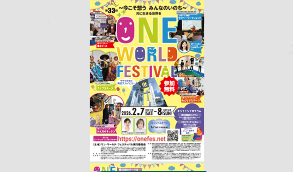 関西で最大級の国際協力・交流の催しであるワン・ワールド・フェスティバルは、「共に生きる世界を ~今こそ想う みんなのいのち~」をテーマに、今年も、再開発の進む大阪駅北地区(通称:梅田北ヤード)のランドマークタワーである「梅田スカイビル」を会場として、2026年2月7日(土)、8日(日)の2日間の日程で開催されます。